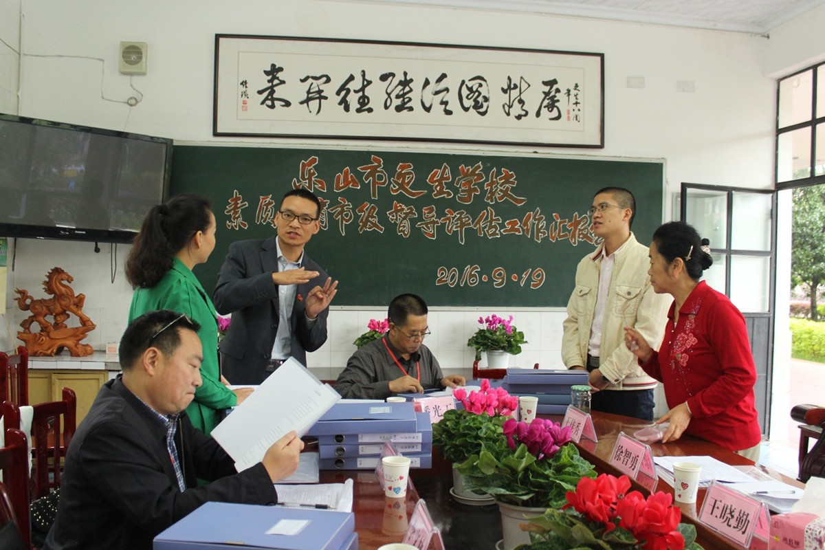 9月19日-20日,乐山市人民政府高中素质教育督导评估组在全国中小学教育督导评估专家、市政府教育督导主任李文林的带领下,一行9人对更生学校进行督导评估。在两天的督导评估工作中,评估组专家听取了阮平校长《以生为本 为学生终生幸福奠基》的学校素质教育工作汇报,查阅了资料,召开了学生、家长、教师座谈会并进行了问卷调查,深入课堂听课,观摩了阳光体育大课间活动,实地察看了学校各功能室和校园环境。