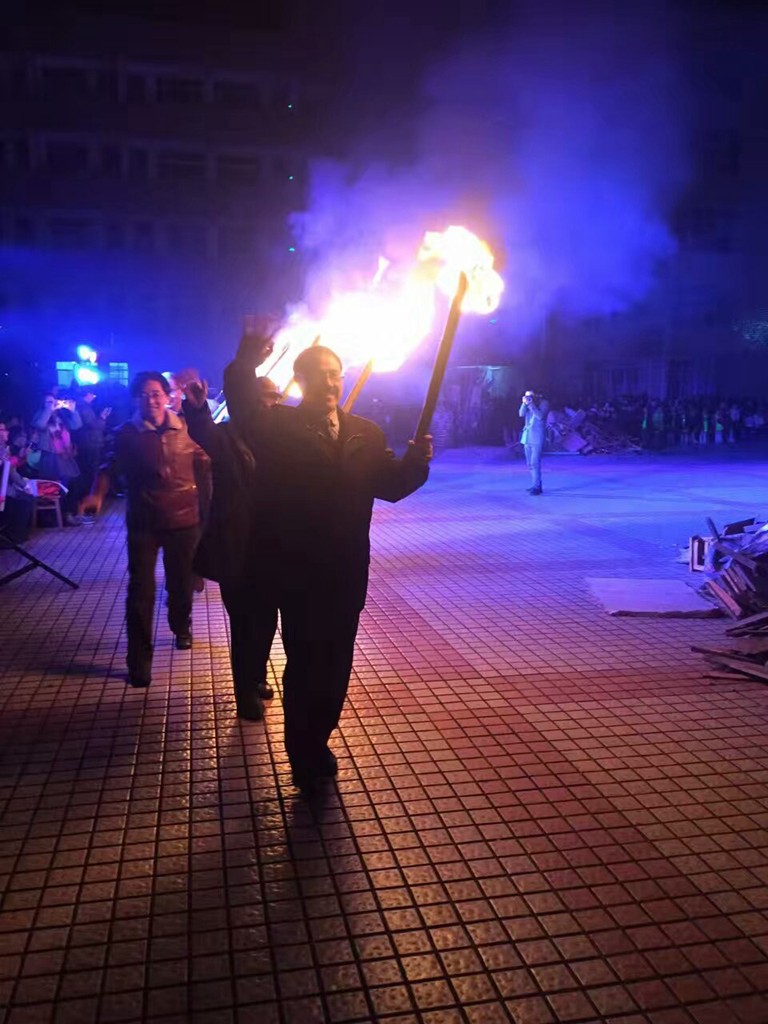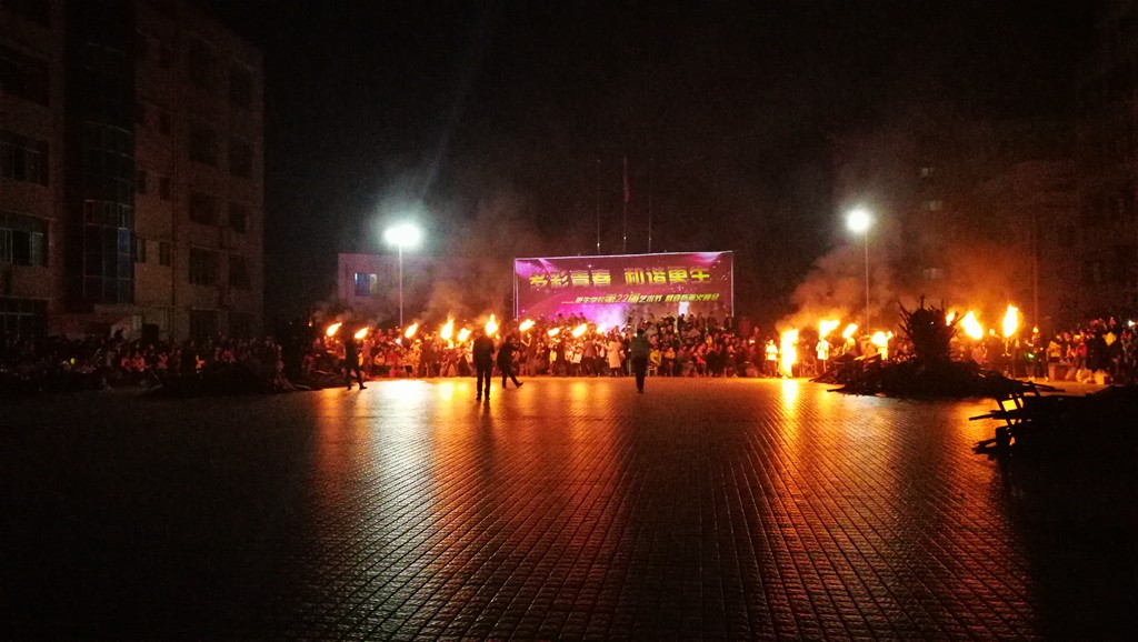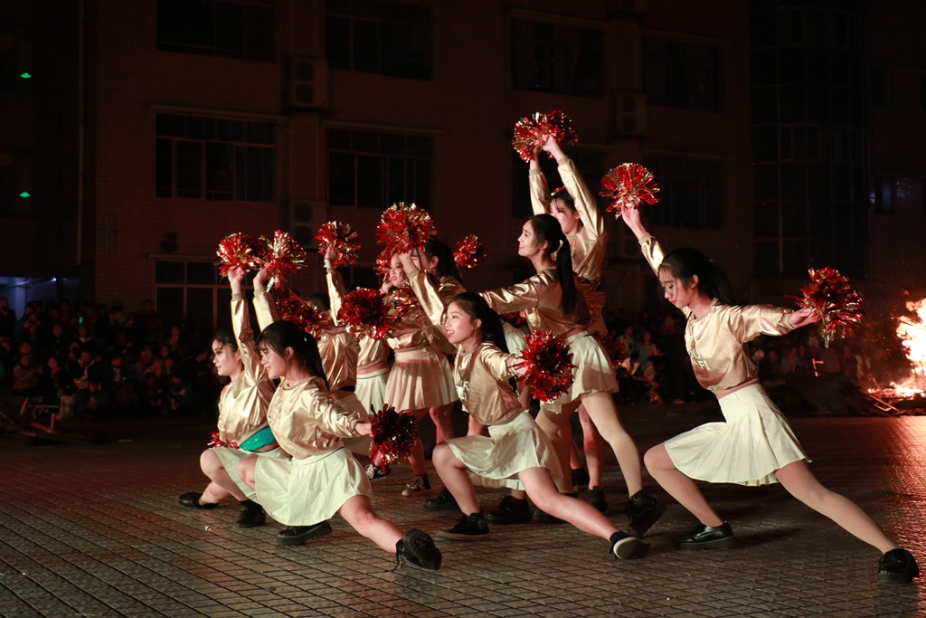 各班经过充分准备,为晚会带来了丰富多彩的节目和达体舞表演,精彩的表演赢得了大家的喝彩与掌声,老师们和同学们一起在火堆旁载歌载舞,尽情释放着自己的欢乐与激情。